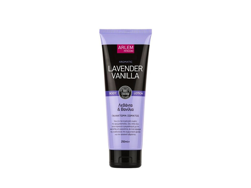 Užijte si dokonalé omlazení a hebkost pokožky s aromatickou řadou tělových mlék Arlem. Tělové mléko Arlem Lavender & Vanilla je obohaceno o komplex vitaminu A-E-F, polysacharidy a přírodní vanilkový extrakt. Poskytuje bohatý hydratační účinek a dlouhotrvající nádhernou vůni. Lehká textura a rychle se vstřebávající složení, které zanechává pokožku jemnou a vláčnou bez mastnoty. Vhodné pro každodenní použití.