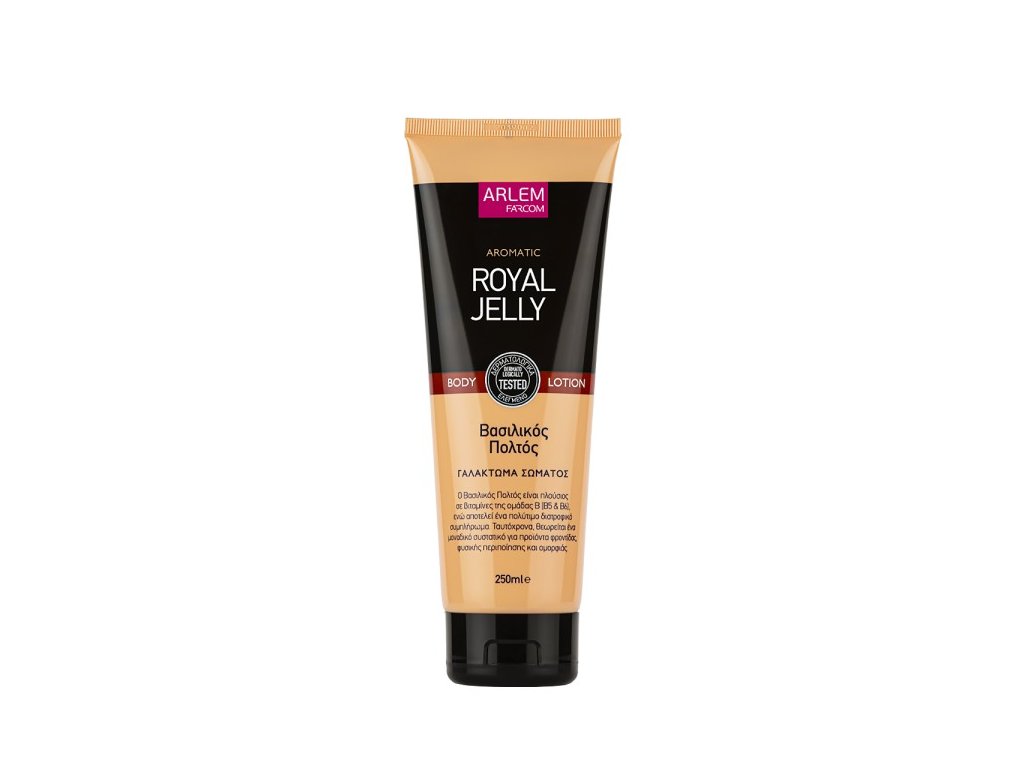 Užijte si dokonalé omlazení a hebkost pokožky s aromatickou řadou tělových mlék Arlem. Tělové mléko Arlem Royal Jelly je obohaceno o komplex vitamínů A-E-F, polysacharidy a mateří kašičku. Poskytuje bohatý hydratační účinek a dlouhotrvající nádhernou vůni. Lehká textura a rychle se vstřebávající složení, které zanechává pokožku jemnou a vláčnou bez mastnoty. Vhodné pro každodenní použití.