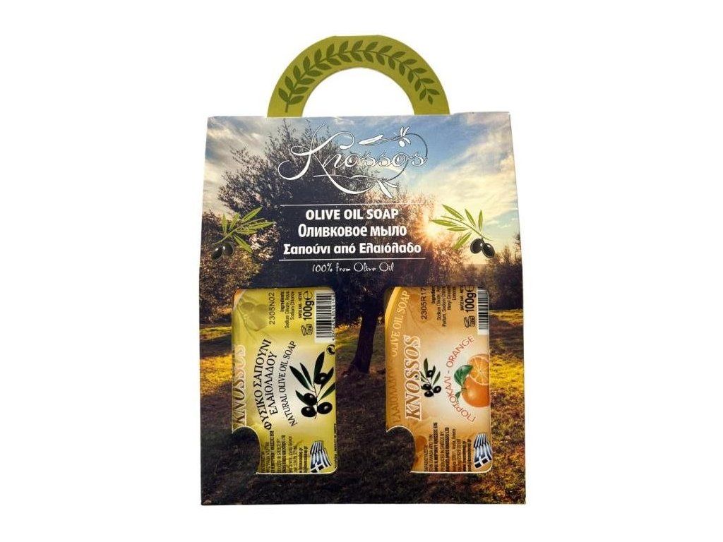 Knossos Dárková sada Olivové mýdlo bílé 100 g + pomeranč 100 g