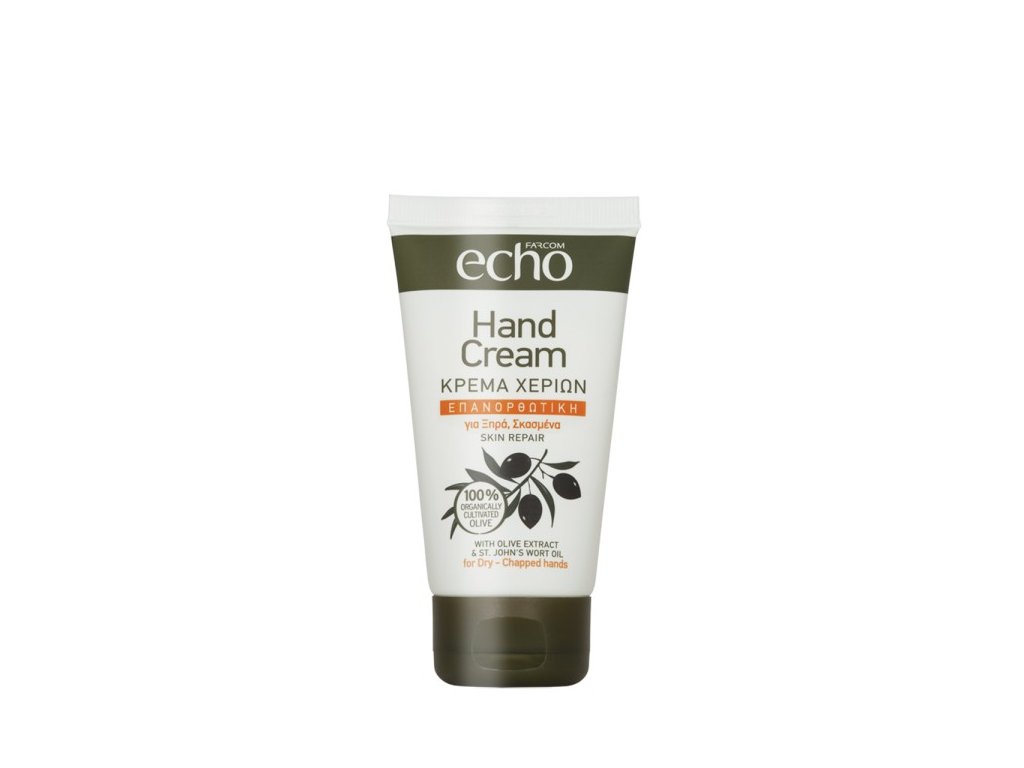 Krém na ruce Εcho skin repair obsahuje přírodní hydratační, zklidňující a antioxidační složky, které poskytují hlubokou hydrataci pokožky a okamžitě uleví suchým a popraskaným rukám. Bohatá, nemastná textura, která se snadno roztírá a rychle vstřebává. Dermatologicky testováno.