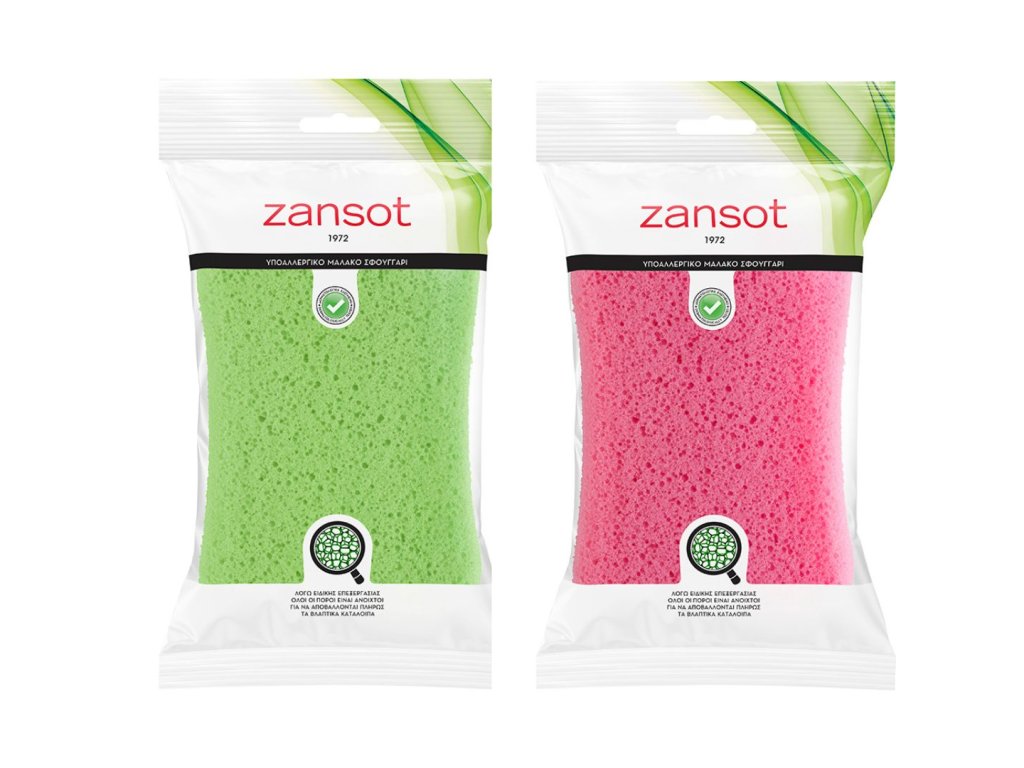 Tělová houba zansot se vyrábí v Řecku z vysoce kvalitního hypoalergenního materiálu. Díky své jedinečné syntéze spolu všechny její póry komunikují, což umožňuje vodě snadno cirkulovat v houbě. Při vyplachování jsou smyty všechny zbytky, které tvoří bakterie. Jemná houba zansot pečuje o citlivou pokožku a nabízí jemnost a příjemný pocit. Po každém použití houbu dobře opláchněte, aby zůstala vždy čistá.