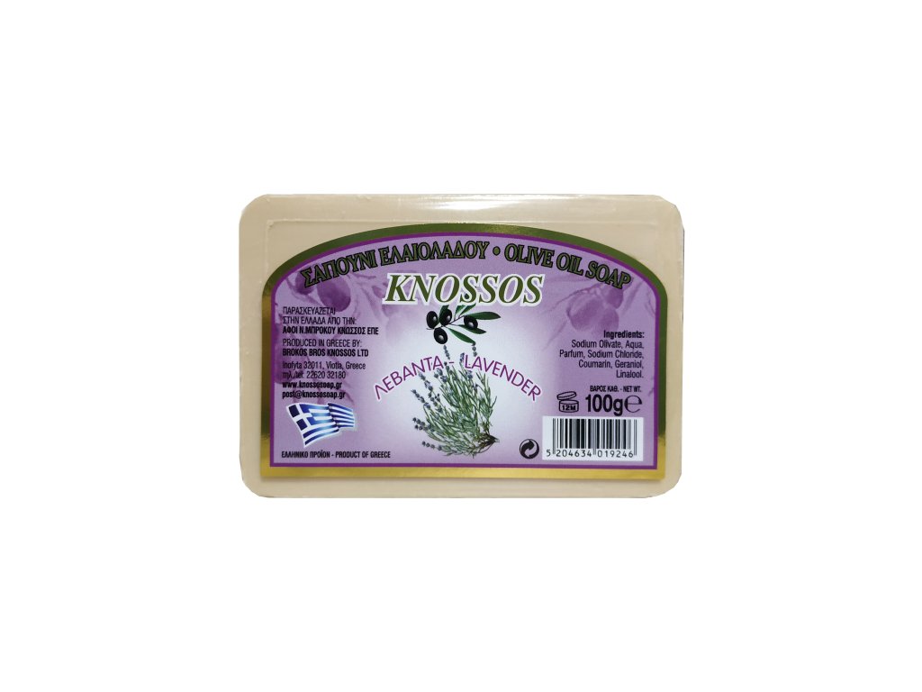 Tradiční řecké olivové mýdlo Knossos s vůní levandule výborně čistí a zároveň zvláčňuje pokožku celého těla. Je vhodné pro všechny typy pleti a díky jeho šetrnému složení jej lze použít bez obav i na obličej. Mýdlo obsahuje vysoký podíl krétského olivového oleje, který pro jeho vynikající hydratační schopnosti používají obyvatelé oblastí okolo Středozemního moře již po staletí.