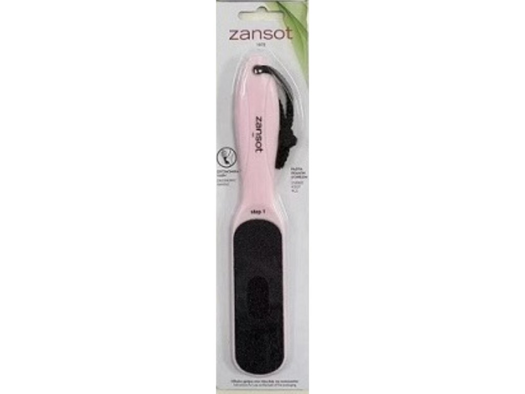 Plastový pilník na nohy Zansot má oboustranný povrch pro okamžité a viditelné výsledky: