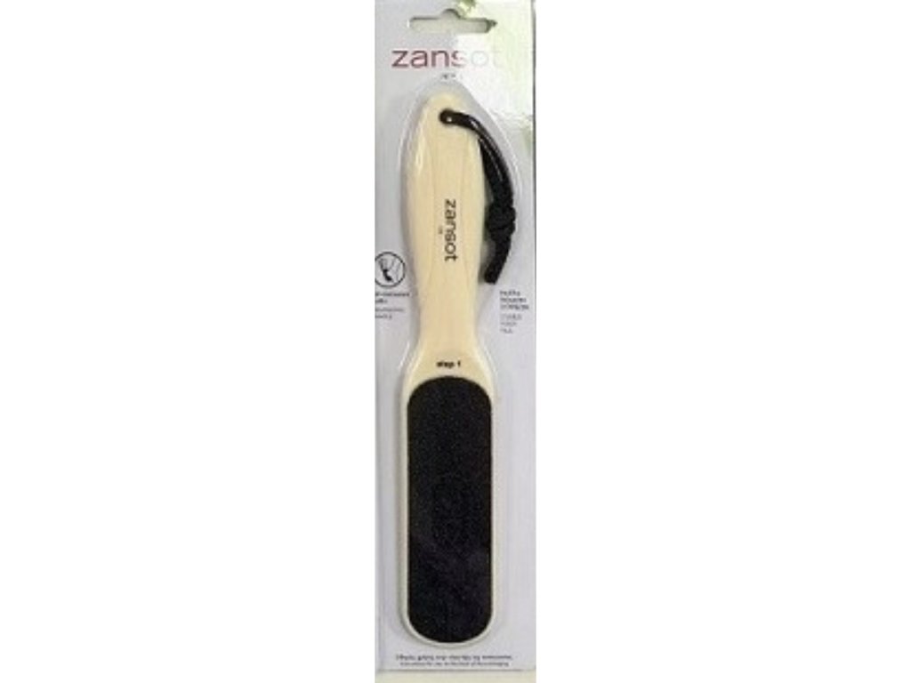 Plastový pilník na nohy Zansot má oboustranný povrch pro okamžité a viditelné výsledky: